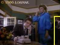 DAVID GUST, the tall, black-haired and mustached uncredited extra, who is best known for his rôle as an assistant district attorney (# 091, 092 and 154), but who also plays different characters in the series, is a patron at the San Francisco nightclub where Melissa and Eric are in this episode.