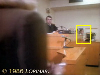 DAVID GUST, the tall, black-haired and mustached uncredited extra, who is best known for his rôle as an assistant district attorney (# 091, 092 and 154), but who also plays different characters in the series, is a spectator in Angela's trial in this episode.