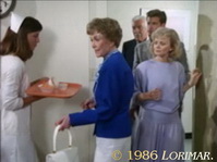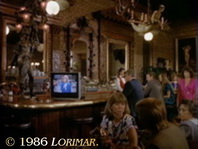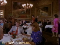 The final title card after the end credits no longer shows the yellow LORIMAR logo (designed by PAUL PASCARELLA) as it was in use during the first five seasons of the series, but now shows the logo of the newly formed LORIMAR-TELEPICTURES (following the merger of LORIMAR PRODUCTIONS and TELEPICTURES CORPORATION).