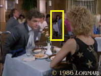 Uncredited stand-in GORDON HODGINS appears as an extra again — this time in his usual rôle as a Tuscany Valley gentleman in Nick's Diner.