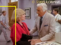Uncredited extra PAUL VAN appears in his usual rôle as the mustached Tuscany Valley doctor again — this time as a patron at the Del Oro lobby bar. He is in the company of one of his colleagues from the hospital again, this episode Dr. Walkling.