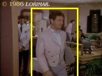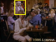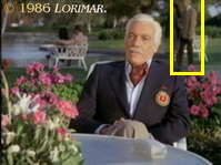 Uncredited extra BUZZ BARBEE appears in this episode again in his usual rôle as a white-haired Tuscany Valley doctor — this time as a patron on the Del Oro grounds. For another appearance in this episode, see below.