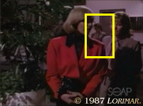 The recap for the previous episode shows two frames that were missing in the previous episode — a close-up of the telephone ringing in Kit's suite and her leaving the room (second and third screen captures). The cliffhanger of # 140 closed on a close-up of Kit writing her suicide note and looking into the mirror with the phone ringing in the background (first screen grab). The scene in # 140 used to be longer, but had to be shortened to match the usual one-hour program schedule (including commercials); the "superfluous" footage was used for the recap.