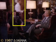 After his first appearance in this episode in a different part (see above), DAVID GUST, the tall, black-haired and mustached uncredited extra, who is best known for his rôle as an assistant district attorney (# 091, 092 and 154), but who also plays different characters in the series, appears a second time — now in his usual A.D.A. rôle, entering the Tuscany County Administration Offices.