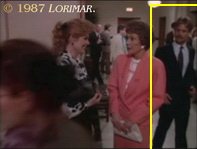 After her first appearance in this episode (see above), uncredited extra ARLENA HOLLARMAN APISA appears again as Helen, the Del Oro Spa & Country Club chief receptionist — now not at her place of work, but as a spectator in the corridor of the Tuscany County Courthouse.