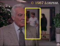 Different takes: The moment when Kit, after entering the courtroom, says, "Close, but no cigar!", was presented in a long shot in the preceding episode (screen grab 1) while it is featured in a close-up from a different direction (screen capture 2) in the recap before the main title of the current episode.