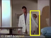 Uncredited extra RICHARD MONAHAN appears in this episode again — first in two scenes, as a doctor at the Queen of the Valley Hospital again. For later appearances in this episode, see below.
