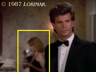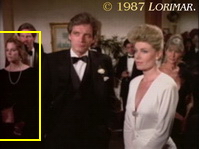 Uncredited extra SHARRI ZAK appears as the gray-haired Tuscany Valley socialite with the pony tail again; this episode as a guest at Richard and Maggie's engagement soirée in the Falcon Crest Victorian Mansion.