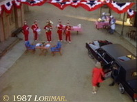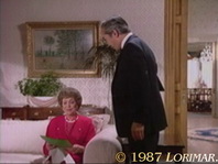 The shot of Eric in the Falcon Crest Victorian Mansion living room in this season's main title (right screen capture) is from an unused version of the scene in the Falcon Crest Victorian Mansion in this episode (compare the left screen grab for the version used this episode).