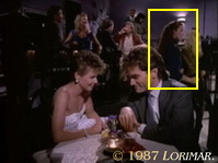 Uncredited extra LARRY HUMBURGER appears in another rôle this episode — first, as a patron at The Max dancing with Vickie. For his second appearance in this episode, see below.
