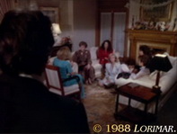 Post-production mistake: The establishing shot of the Falcon Crest Victorian Mansion at night is one of the clips shot during the shooting of the fire scene for # 103 (compare there), which includes the false gable that was specifically built and burnt down. The same mistake occurred in # 115, 125 and 137 already.