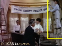 Uncredited extra RICHARD MONAHAN, who plays a Queen of the Valley Hospital doctor in most of the episodes he appears in, participates in this episode again — as a guest at Angie's fundraiser for the QVH's Frank Agretti Cancer Unit.
