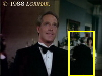 Mistake: When Melissa enters the Falcon Crest Victorian Mansion dining room during the Frank Agretti Cancer Unit charity gala for the QVH, a man, a woman and a maid are standing in the background. In the subsequent frame (filmed from across), however, the man and the woman switched their places and are standing much closer to the foyer.