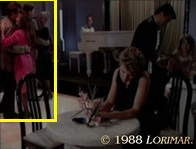 Uncredited stuntman CHRISTOPHER DOYLE, who previously appeared in # 011 (compare there), plays the slender dark-haired man dancing at The Max. LORIMAR hired a stunt crew as the dancers close to Dan and Eric's fight.