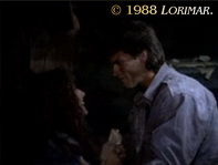 In the more dangerous parts of the scene with the first cave-in in Hobart, CA which lets Lance and Melissa collapse through the mine shaft into the strongbox vault, LORENZO LAMAS and ANA-ALICIA are replaced by stunt doubles JOE STONE and DONNA GARRETT respectively.