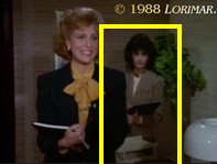 Uncredited extra SUZANNE LODGE appears in this episode again the dark-haired Tuscany Valley socialite, this time in the executive office anteroom at Channing Enterprises.