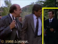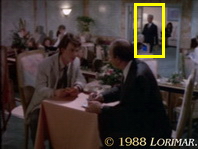 Uncredited extra BUZZ BARBEE appears in this episode again in his usual rôle as a white-haired Tuscany Valley doctor — this time as a patron at the Del Oro Spa Restaurant.