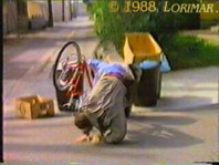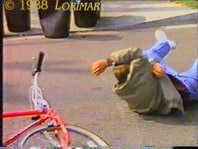 When Ben takes a fall off his bike, BRANDON DOUGLAS is replaced by a stunt double. In the close-up, the bike on the ground is parallel to Ben's position; but right after the fall, the front wheel was closer to Ben's head. When he falls, he lands on his right hand and finally touches the ground with the back of his left. Then why is his palm wounded in the later scene with Frank? When the stunt double rolls over the ground, his pants are neither damaged nor dirty. But in the later close-ups of BRANDON DOUGLAS, his pants are torn, and his knee is bleeding.