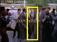 Uncredited stand-in SAM HAGGIN appears as an extra again. This time, the slender dark-haired Tuscany Valley gentleman appears at Richard and Maggie's ranch among the reporters after Ryder's death.