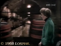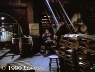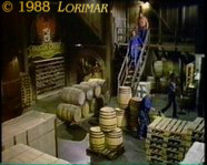 Falcon Crest Winery Building interiors: A new set is used for the first time. That part of the winery consists of limestone and wood, has a cave and is decorated with a big falcon logo — the same logo as on the elephant door of sound stage 4 at CBS-MTM (now RADFORD STUDIO CENTER); compare # 149 in particular.