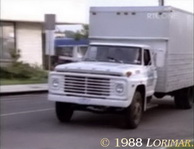 License plate number of Tuscany Trucking's white 1968 Ford F-600 truck: 2DHO435. The same number used to be on Angela's white Rolls-Rolls Silver Cloud II (compare # 135) and on Melissa's white Porsche (compare # 185) — not an appropriate prop policy.