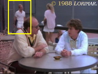 Uncredited extra GARY GELLER appears as the blond, short-haired and mustached socialite again — this time as a Del Oro Tennis Club patron.