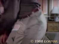 Mistake: At the beginning of the scene with Pax and Angela in her Del Oro suite, Lance is standing behind the couch that is facing the fireplace in the living room. After the angle favoring Angela on the settee and Pax from behind, the scene cuts to Lance, walking near the louvered folding doors of the dining room (screen grab 1) around the sofa on which Pax is sitting. After another cut, he is coming from the left (as seen from the camera's POV) and sitting down on the settee next to Angela (screen captures 2 and 3). If you compare the layout of Angela's suite, this is not possible because Lance would have to have moved through between Pax and the coffee table to reach his final position. Only two seconds go by until Lance is sitting down, which is way too short for that.