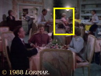 Uncredited extra TONI SCHABER appears as the curly haired platinum blonde again — this episode as a bar patron at the Del Oro Spa Restaurant.
