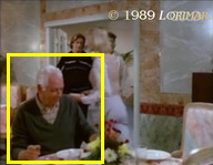 Uncredited extra PAUL VAN appears in his usual rôle as the mustached Tuscany Valley doctor again — this time as a patron at the Del Oro Spa Restaurant.