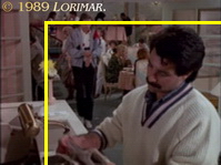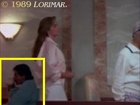 After his first appearance in this episode (see above), uncredited extra DOUGLAS MAIDA participates as Dave again — not in his usual bellboy's outfit, but apparently off duty at the Del Oro Spa Restaurant this time.