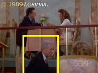 Uncredited extra BUZZ BARBEE appears in this episode again in his usual rôle as a white-haired Tuscany Valley doctor — this time as a patron at the Del Oro Spa Restaurant.