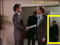 Uncredited extra MARCELLO CLAY appears in this episode again as the middle-aged black man — this time as a patron in the lobby of the Del Oro Spa Building.