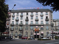 In contrast to the earlier establishing shot in daylight (see above), the nightly establishing shot of the hotel Le Bristol in Paris features the Beau Rivage, a luxurious hotel in Geneva / Switzerland; it is also stock footage from a film library.