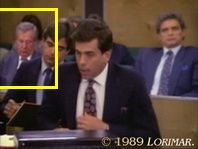 Uncredited extra BUD BOUGIE appears in this episode again — as in the preceding episode, in his usual rôle as the brunette (now gray-haired) Tuscany Valley gentleman again who is a spectator at Angela's competency hearing.