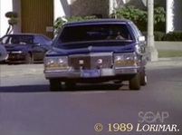 The use of the stock shot is the reason why the exterior footage does not match with the interior scene — which was shot inside the stretched 1985 Lincoln Town Car, the picture car that is usually filmed for scenes with Sharpe this season (see # 206), which is, by the way, the same picture car used as Angela's rental limousine for her and the family's way to Maggie's funeral earlier in this episode.