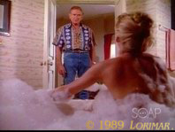 Mistake: The close-ups of Frank and Genele in the Agretti Residence bathroom are from various takes that were combined in the editing process. This becomes apparent when Genele's left hand is out of the camera angle in the first frame, but close to Frank's head in the subsequent frame filmed from across. Furthermore, bathing foam can be seen in Frank's face in one frame, but is gone in the next one. Again, this is the typical mistake caused by the particular close-up filming technique — check # 001 (Chase and Maggie at the Gioberti Family Cemetery) for details.