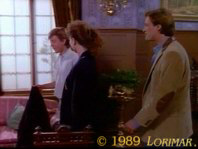 Omitted was an act 1 scene from early script drafts in Lance and Pilar's bedroom in the Falcon Crest Victorian Mansion, in which Lance stands and primps in front of a mirror in his new perfectly tailored suit right before his meeting with bank manager Beeker.