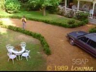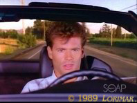 The scene with Lance and Pilar driving along a country road in his convertible is obviously taken in the studio. It is a cheap blue screen technique — the very same seen as in the scenes with Emma and the Habermans in # 171, with Rosemont in # 181 and with Richard in the police car in # 206. The Tuscany Valley country road seen in the projection is Oak Knoll Avenue outside Napa (driving from northeast at approximately the intersection with Big Ranch Road in southwestern direction); it is stock footage LORIMAR shot during earlier location filming in the Wine Country.