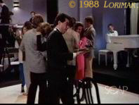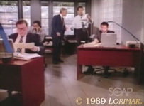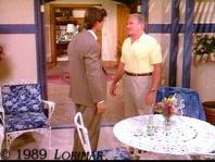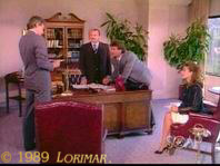 Season time frame: Day 1 of the current episode (Richard's first day of work at Murdy & Sampson) is Tuesday, 10/17/1989, as it can be concluded from # 210 (see there). A few unseen days or weeks must have gone by both during # 208 — between the power outage in the hospital and Vogel's refusal to do business with Lance; also before the scene when Pilar goes to Vogel to sleep with him — and between # 208 and 209. According to Lance's statement at the beginning of the current episode, he only has three days to raise the money to pay back the loan to the Tuscany Bank, which means the episode closes on Friday, 10/20/1989 (days 2 of the episode). This also makes it clear that the days between night 1 (10/17/1989) and day 2 (10/20/1989) remain unseen in the current episode.