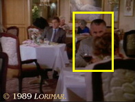 After his first appearance in this episode (see above), uncredited extra PAUL VAN participates again in his usual rôle as the mustached Tuscany Valley doctor — now at the restaurant in San Francisco where Richard meets Sharpe.