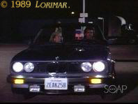 When Lauren arrives on Town Square, the red Volvo 242 DL sedan, a most famous car (see # 055 for details), drives along in the background.
