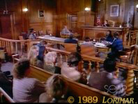 The heavily filmed courtroom known from # 202 is used as a filming location again. It was a permanent interior set at LINDSEY STUDIOS (now VALENCIA STUDIOS) in Santa Clarita, CA.
