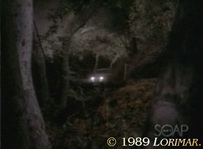 The filming location for both Frank's nightmare (preceding paragraph) and Renée's "gravesite" — the forest in the Tuscany Valley where her dead body was hidden — is a little forest clearing near the driveway to the property in Topanga Canyon (Greater L.A.) that has been in use as the Daniels' log home since # 208.