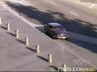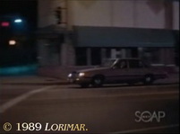 Editing mistake: The first exterior shot of Sharpe's limousine at night (see above) shows an older model — a 1967 black Lincoln Continental Executive — whereas he has a stretched Lincoln Town Car (compare # 206 for details) in all the other scenes. The establishing shot of the limo is old footage from a movie library, which was not carefully chosen.