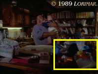 The shot of Chao-Li in the Falcon Crest Victorian Mansion dining room in the current version of this season's main title (right screen capture) is from an unused version of the scene in # 208 (compare the left screen grab for the version used in that episode).