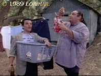 Chalo watches a "Thundercats" cartoon on TV in Sharpe's limo. Inside joke: "Thundercats" was also produced by LORIMAR.