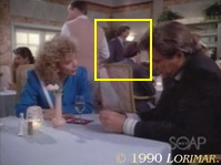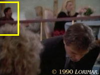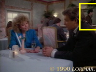 Uncredited extra DOUGLAS MAIDA participates as Dave again — not in his usual corporate outfit, but apparently off duty at the Del Oro Spa Restaurant this time.