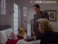 The scene with head nurse Natalie making up Angela's room and saying she left the hospital is shown in the sneak preview at the end of this episode for the next episode. It will also be shown before the main title of # 225 again — contrary to this season's program practice. It is a tag that is not featured in any of the regular four acts of the following episode. This indicates the scene was added later when JANE WYMAN let the producers know she wanted to return on very short notice for the three final episodes.