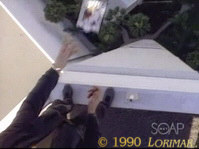 A stunt double replaces DAVID SHEINKOPF in the particularly dangerous scenes on the ledge of the roof of Sharpe Capital Ventures.