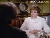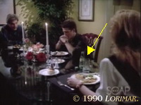 Mistake: In Richard and Angela's conversation about Danny in the Falcon Crest Victorian Mansion dining room, the shots are from various takes that were combined in the editing process. This becomes apparent because Angela's left arm is on her thigh first, but suddenly on the armrest of her chair in the subsequent frame.